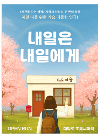 홀로 또는 가족과 함께 ‘오늘’을 살아가느라 지친 마음에게 힐링과 공감을 선물할 뮤지컬·연극 ‘내일은 내일에게’를 소개합니다. 탄탄한 스토리와 검증된 배우들의 생동감 있는 연기로 관객 몰입도를 한층 끌어올린 작품이에요.